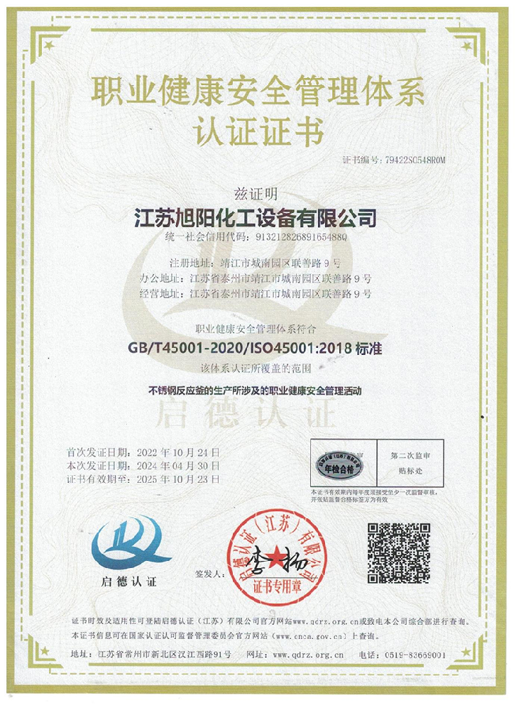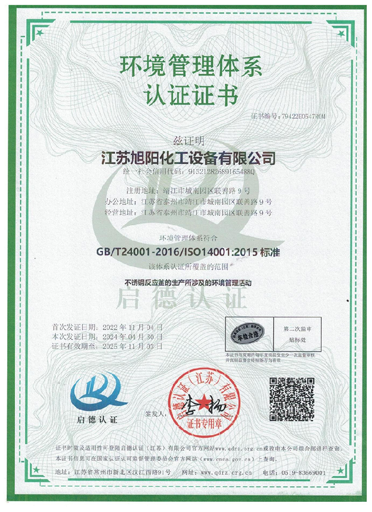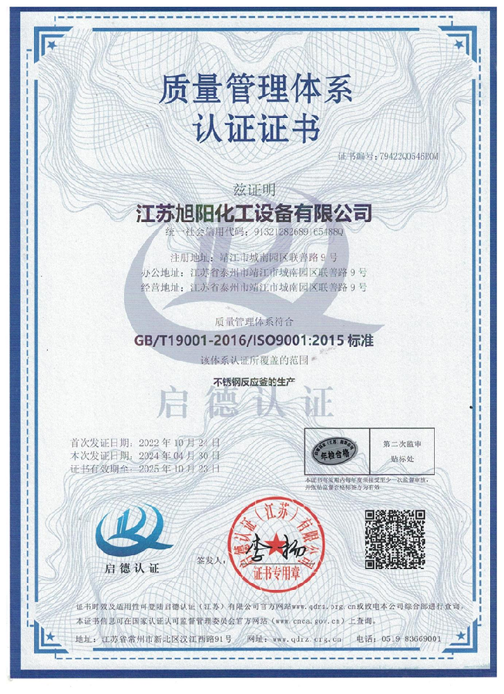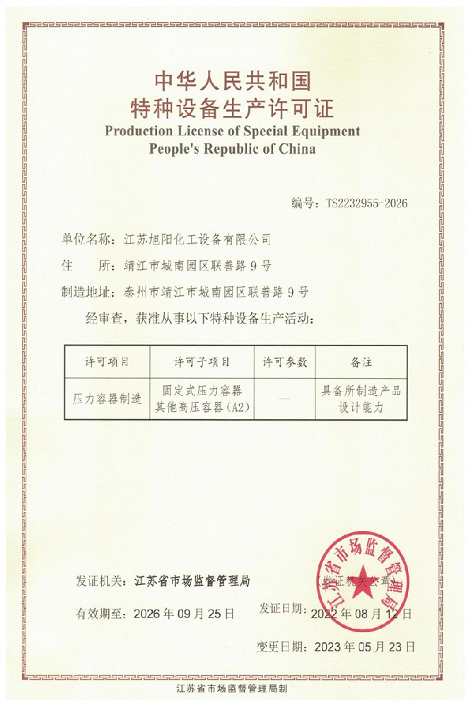 江蘇旭陽(yáng)化工設(shè)備有限公司專業(yè)從事各類化工、環(huán)保、制藥、發(fā)酵、食品、新材料、鋰業(yè)等項(xiàng)目設(shè)計(jì)、制造及壓力容器的生產(chǎn)制造,是一家集研發(fā)、生產(chǎn)和進(jìn)出口貿(mào)易于一體的高科技企業(yè)。